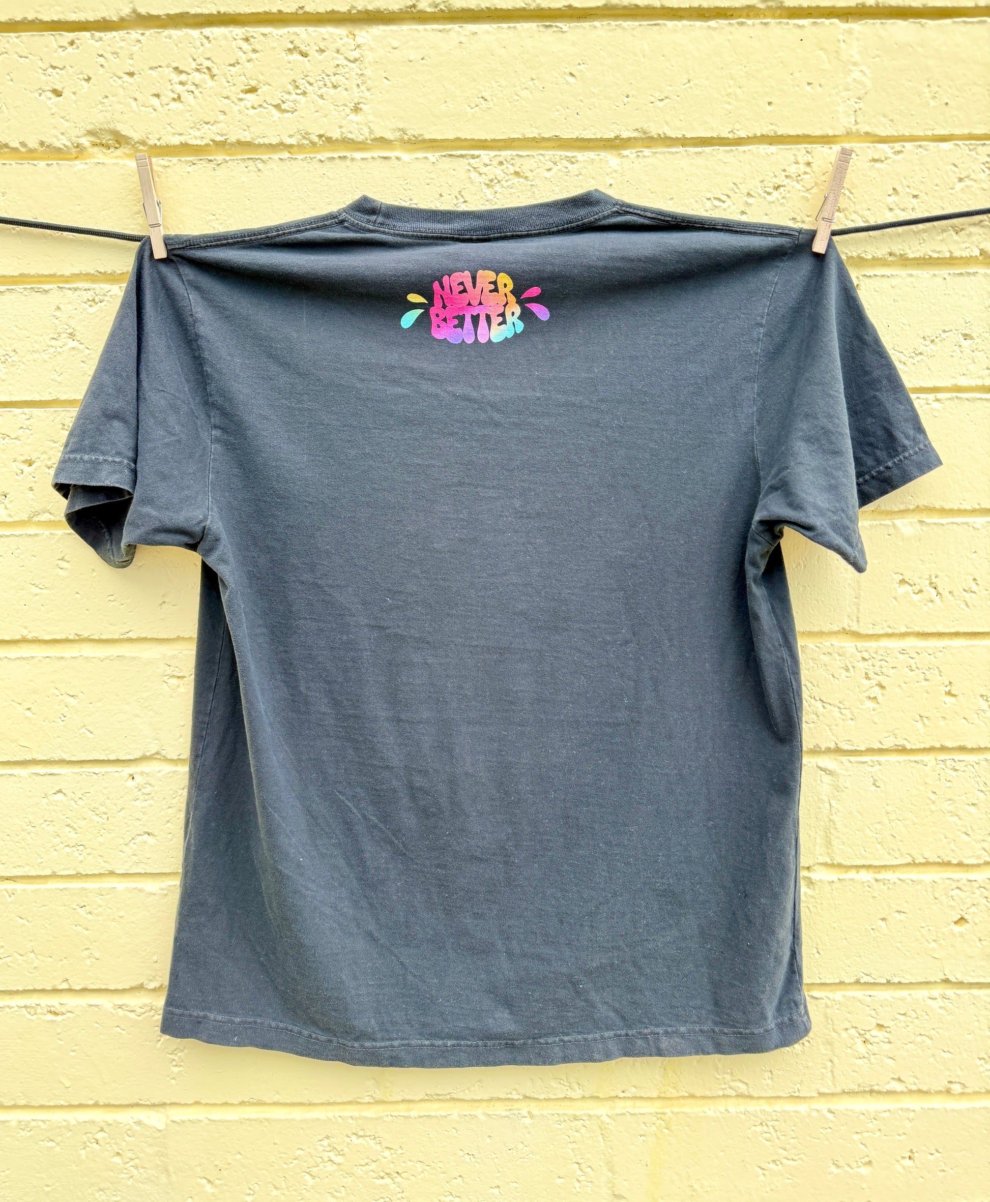 Printed on a soft black tee with a regular fit and crew neck, it’s easy to wear and built to stand out.