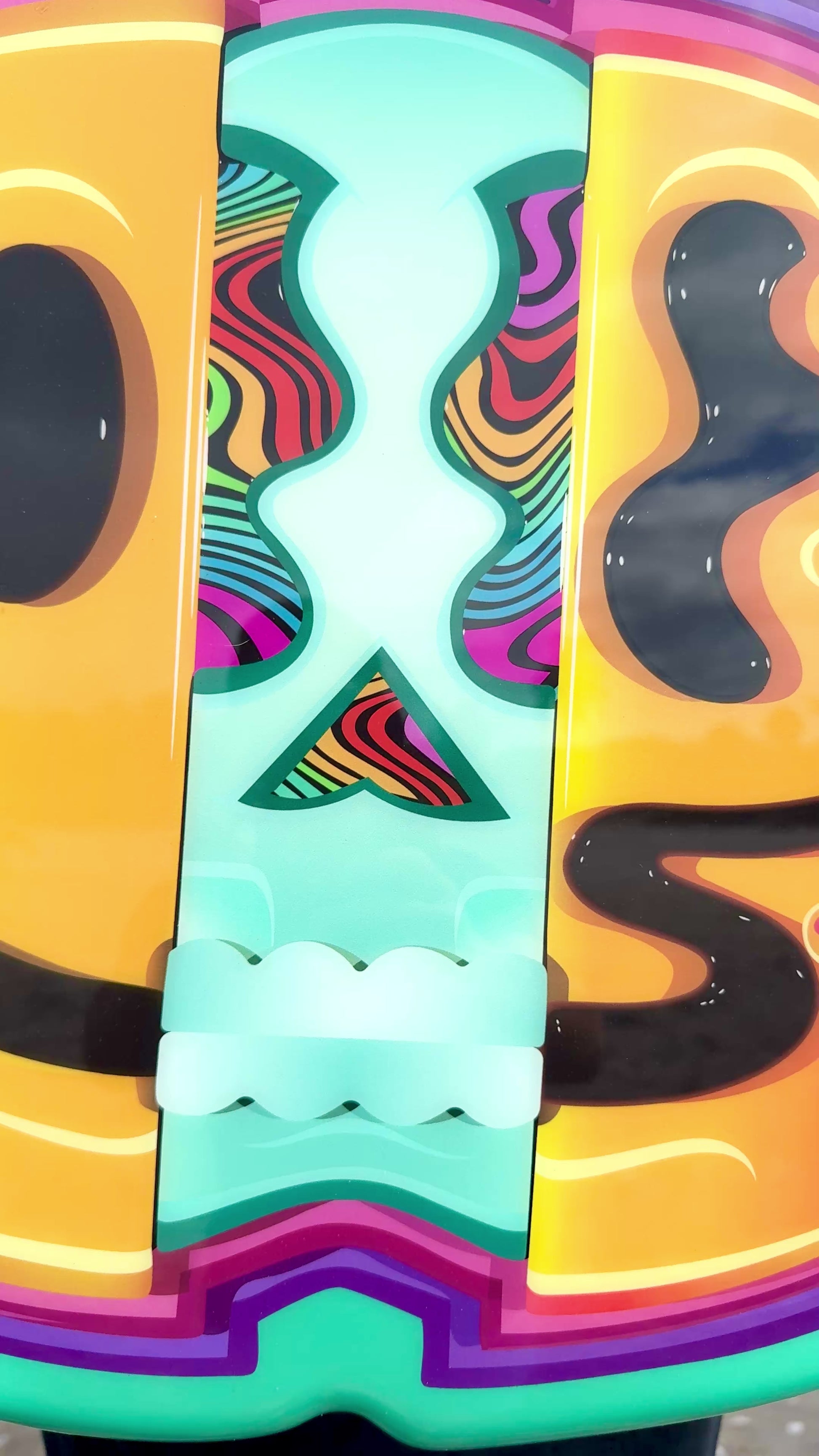 Description: These one off art prints are mounted onto hand cut, sanded, and spray painted composite board shapes. Sealed with an epoxy resin coating for an extra glossy look. No two are alike, as this color combination will only be made once. Signed and dated by the artist. NOTE** Please allow up to 10 business days for shipping. Free Shipping within the Continental US NOTE** FOR INTERNATIONAL SHIPMENTS ONLY - COST WILL BE CALCULATED AND BILLED AFTER PURCHASE.