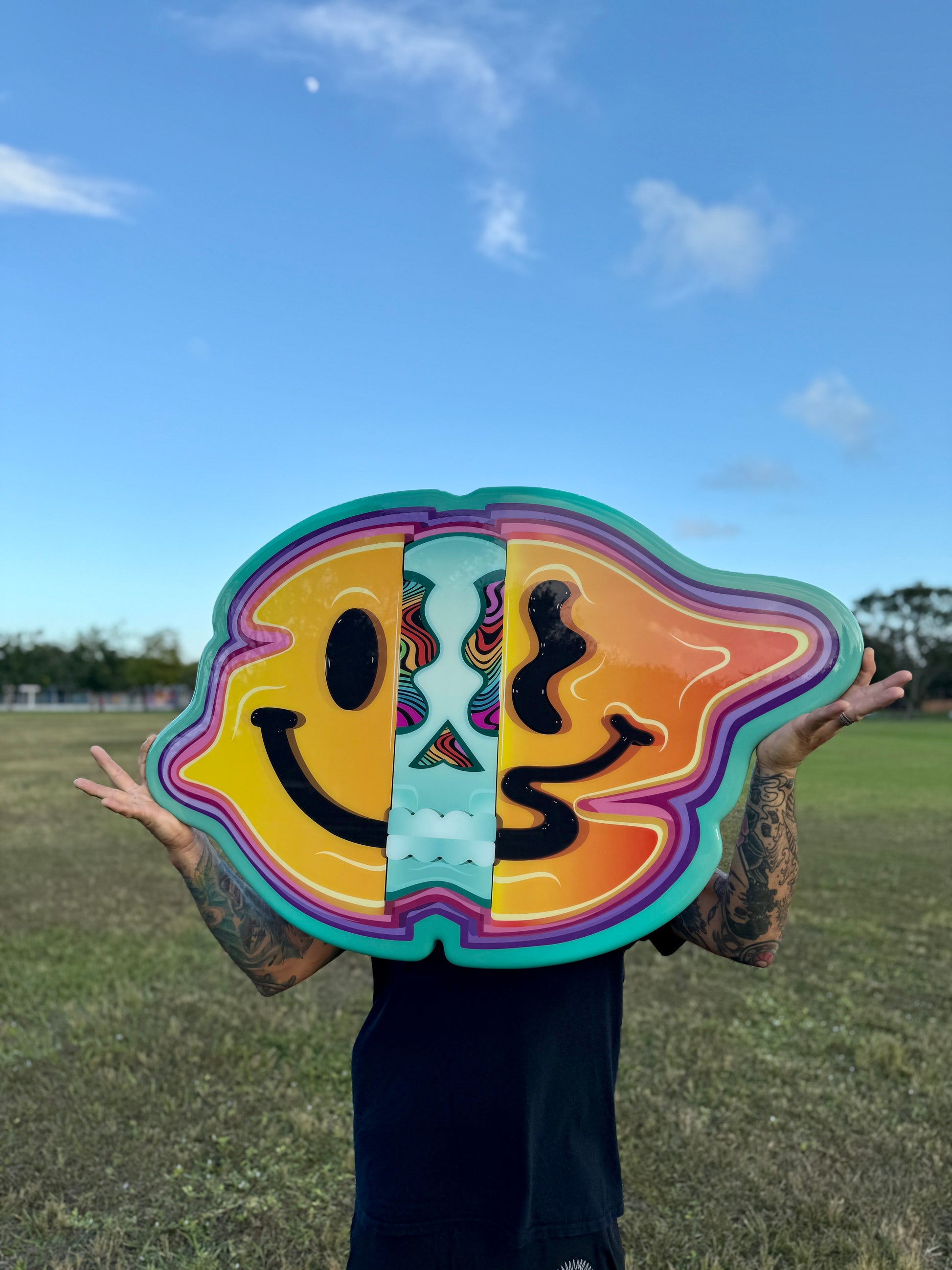 Description: These one off art prints are mounted onto hand cut, sanded, and spray painted composite board shapes. Sealed with an epoxy resin coating for an extra glossy look. No two are alike, as this color combination will only be made once. Signed and dated by the artist. NOTE** Please allow up to 10 business days for shipping. Free Shipping within the Continental US NOTE** FOR INTERNATIONAL SHIPMENTS ONLY - COST WILL BE CALCULATED AND BILLED AFTER PURCHASE.