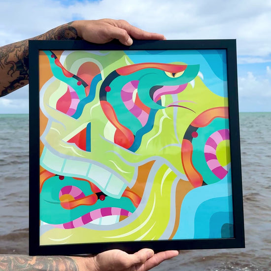 Printed on premium paper and framed in a sleek black frame, this piece is ready to hang and made to light up any wall.
