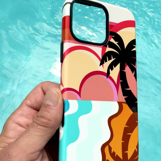 The Shifting Sands Tough Phone Case brings Alex Yanes’ bold color and clean shapes to a laid-back beach scene. Palm trees, rolling waves, and sunset tones wrap around the case for a smooth, vibrant look that stands out without trying too hard.