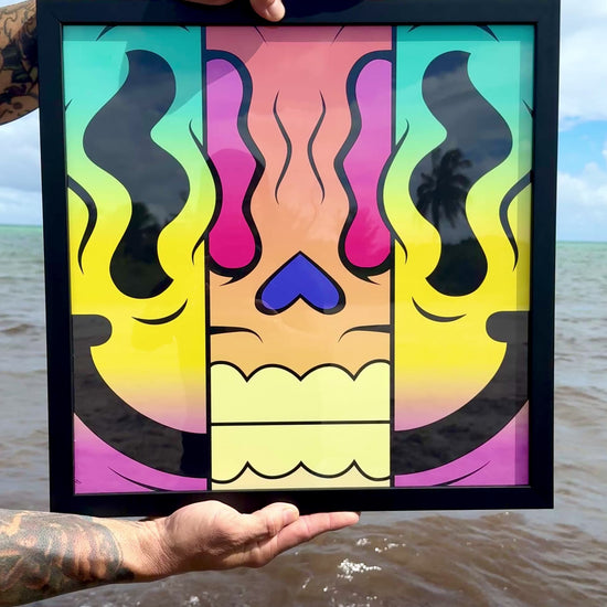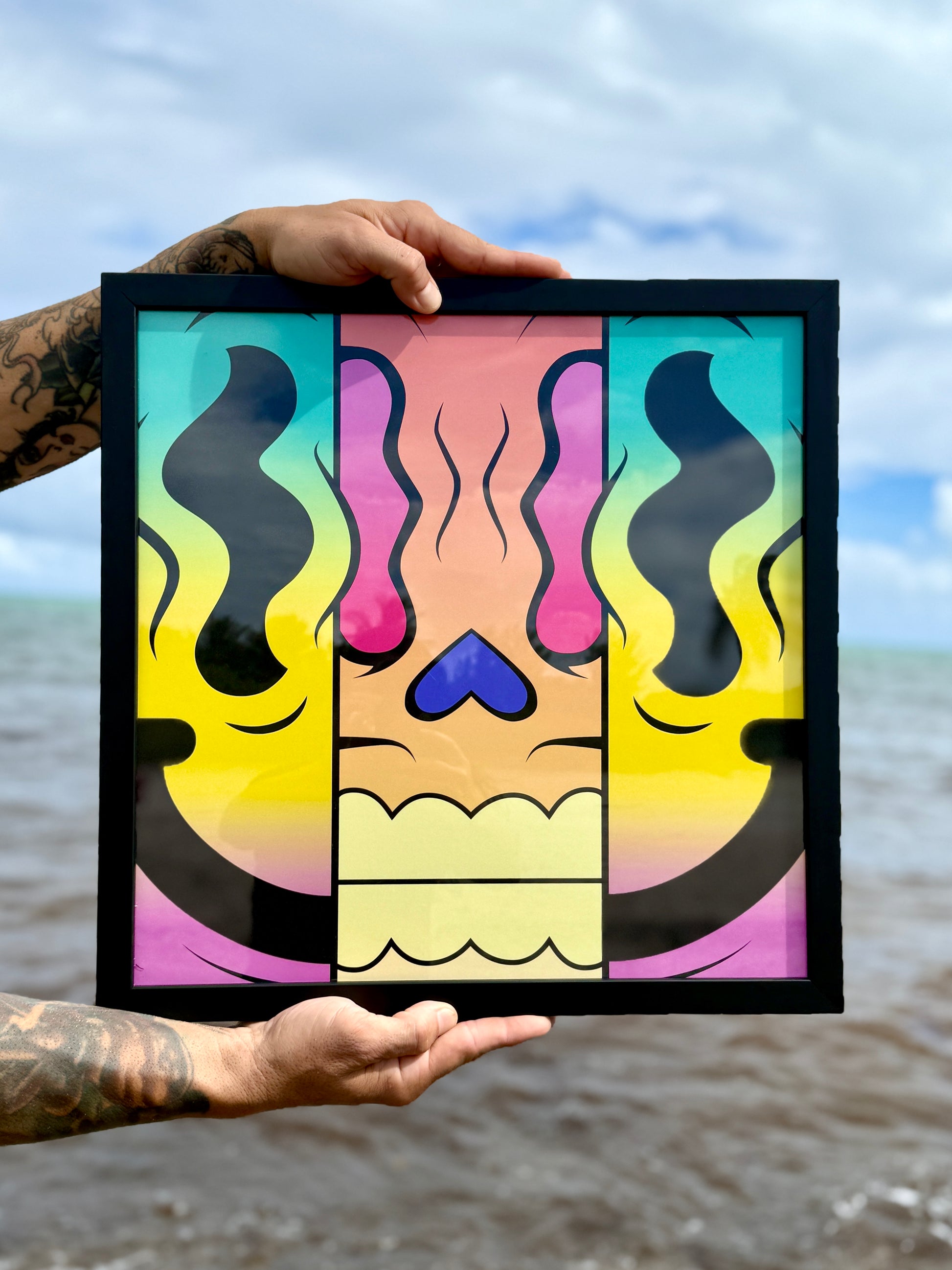 The Trip & Drip framed print captures ’ signature mix of color and character in a clean, bold composition. Flowing shapes, gradient tones, and mirrored symmetry come together to form a melting smile that feels alive with motion.